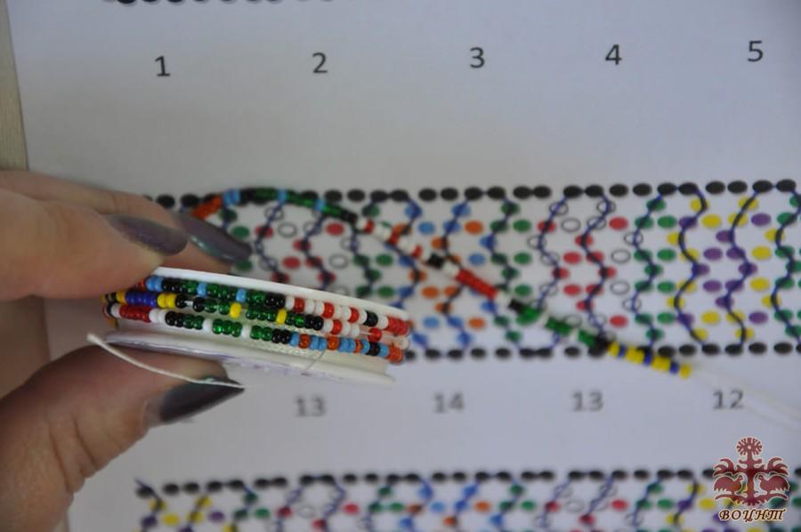 У даному випадку ми будемо працювати з чеським бісером №10, оскільки він найбільш доступний, хоча й трохи завеликий, порівняно з бісером на старовинній зґарді. Для такої роботи добре підійде венеційський або японський бісер №12-13, але його складно знайти в продажу.